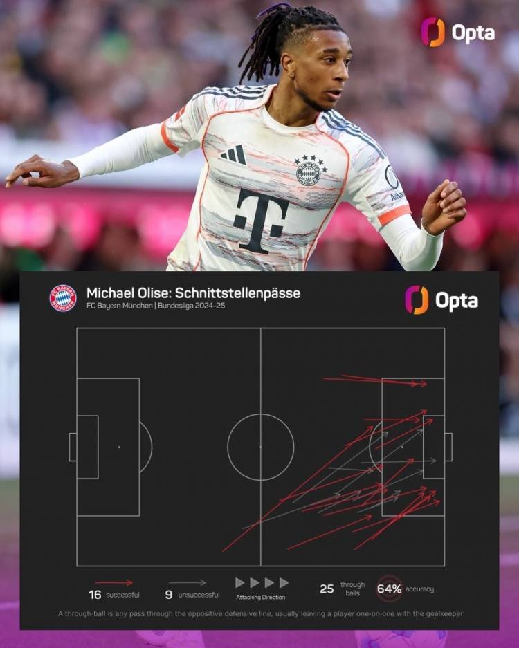 34场德甲12球15助攻!奥利塞上赛季16次成功直塞是德甲同期最多 admin 2025-07-13 德甲 123 0 直播吧7月12日讯 拜仁已经在世俱杯八强战淘汰出局,结束了24-25赛季征程。数据统计显示,奥利塞上赛季联赛共计25次尝试直塞,成功率64%。16次成功直塞也是德甲同期最多,他在34场德甲贡献12球15助攻。